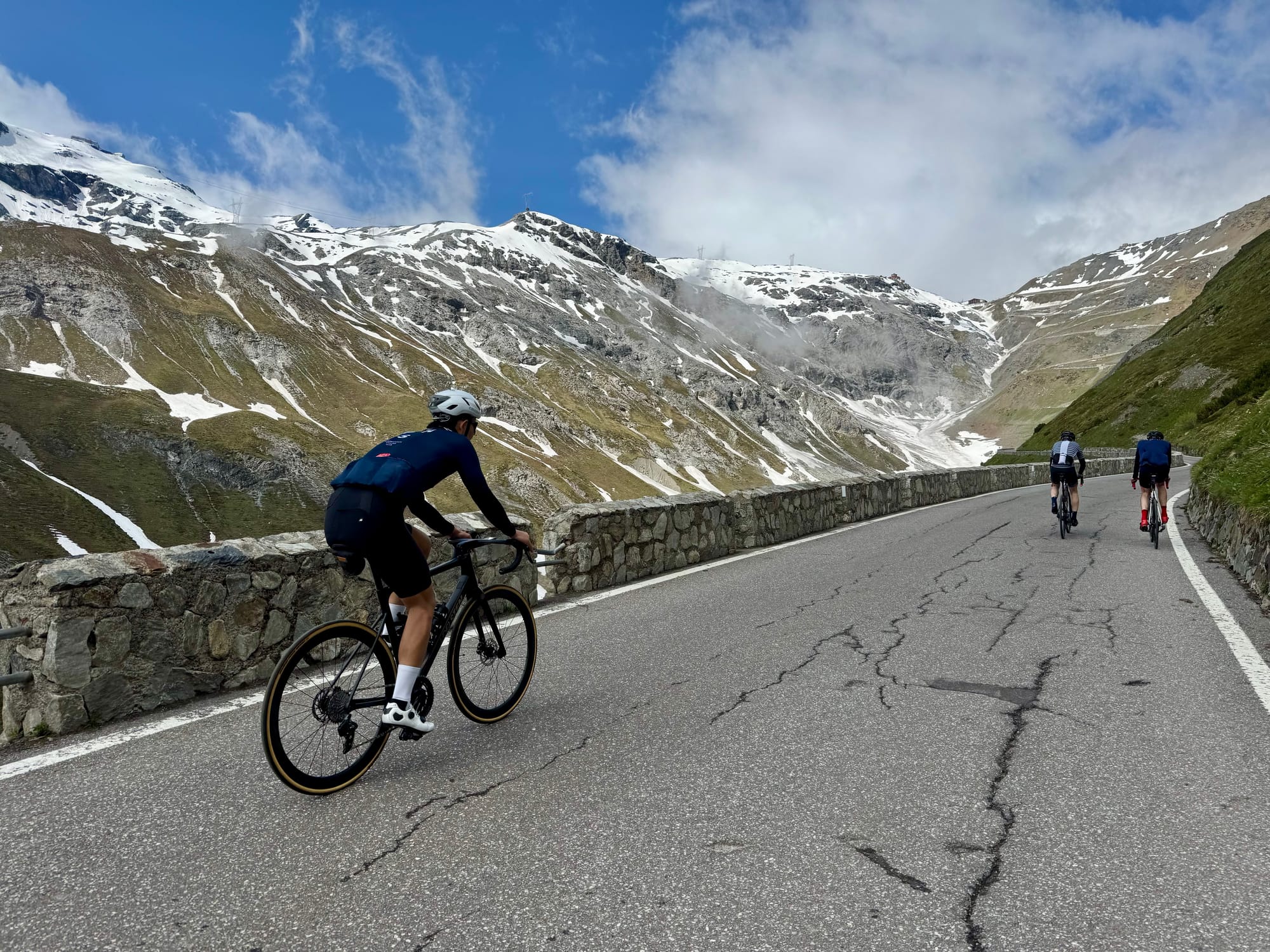 In addition, to prevent you from making the same mistakes I made on my first adventure on Stelvio, please pack warm clothes! (A warm cycling jacket, thick gloves, and a good base-layer are essential year round on Stelvio.) On my first ride on Stelvio, we intended to ride all three sides of Stelvio - Prato, Bormio, and Umbrail. However, after making the first two ascents from Prato and Bormio, I had to return home due to being unprepared for the cold weather. (I had never experienced being so cold until I descended Stelvio twice from 2758m in October with thin gloves and just a vest.) Luckily, my friends were better prepared and completed the Triple Stelvio. With better clothing, I came back and completed my first Triple Stelvio in the Summer of 2025.