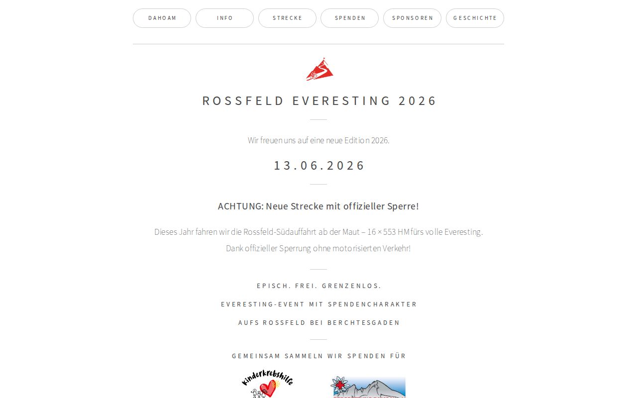 The Berchtesgadener Bicycle Association also hosts an "Everesting Event" every year in June. Here, all cyclists are invited to climb Roßfeldstraße as many times as possible to raise money for children with cancer. (Each completed ascent provides a donation for children with cancer.) Cyclists, who join the event, always have the option to ride Roßfeld as many times as they like.