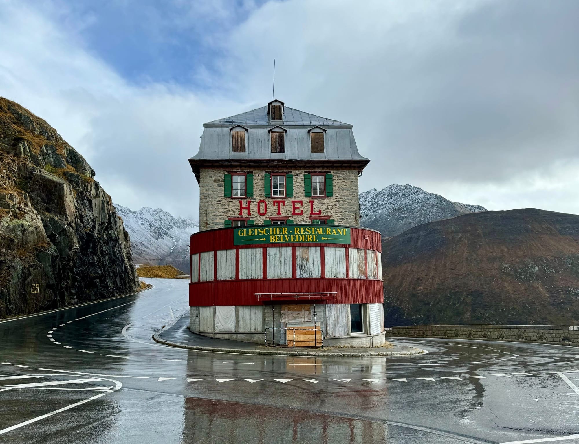 Starting in Andermatt and finishing in the heart of the Swiss Alps, the Furka Pass connects the two Swiss Cantons of Valais and Uri. The legendary Furka Pass first became famous in the James Bond car-chase scene in Goldfinger. Today, the Pass can also be recognized as James Bond Straße. The Furka also features the famous Hotel Belvedere, which offers picturesque Swiss views from the Furka's final Southern hairpin.